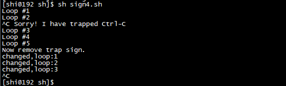 注释trap "echo ' Sorry! I have trapped Ctrl-C'" SIGINT 后: