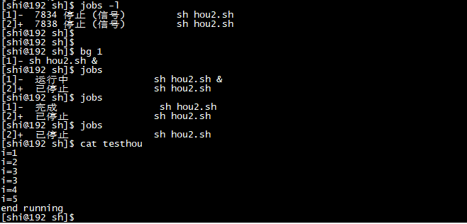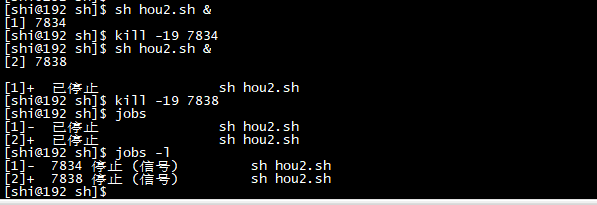 带加号的作业会被当做默认作业。当前的默认作业完成处理后,带减号的作业成为下一个默认作业。任何时候都只有一个带加号的作业和一个带减号的作业,不管shell中有多少个正在运行的作业。