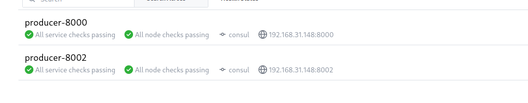 访问http://localhost:8001/health?status=false,等待10秒左右可以看到consumer的状态变为Critical,在访问http://localhost:8001/health?status=true,consumer的状态变为Passing。