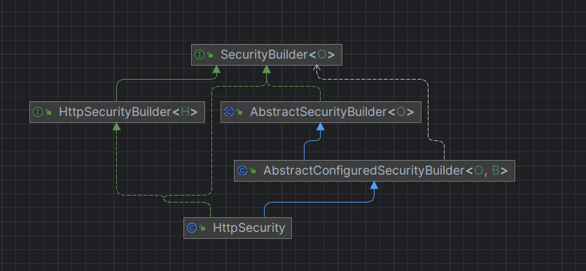 实现了SecurityBuilder接口,上面定义中的参数是DefaultSecurityFilterChain,HttpSecurity是配置DefaultSecurityFilterChain。