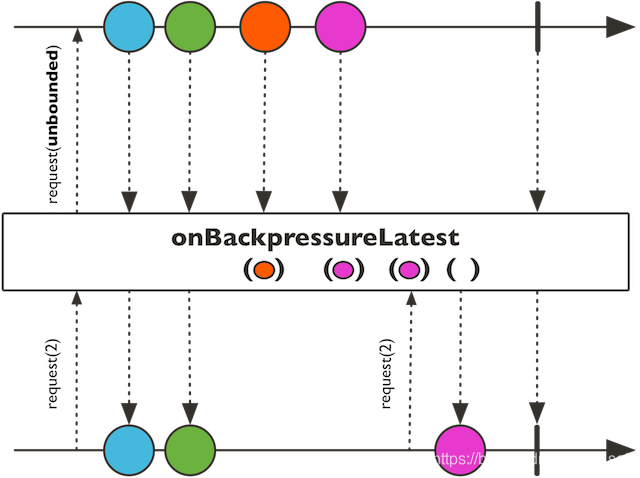 onBackpressureLatest,当有新的request到来的时候,将最新的元素发出。