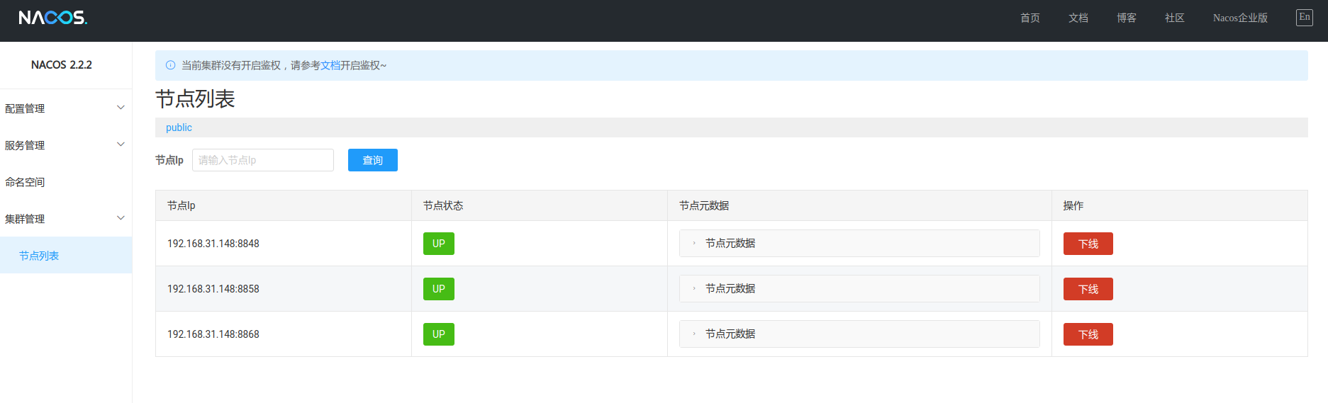 Nacos定义为一个IDC内部应用组件,并非面向公网环境的产品,建议在内部隔离网络环境中部署,强烈不建议部署在公共网络环境。