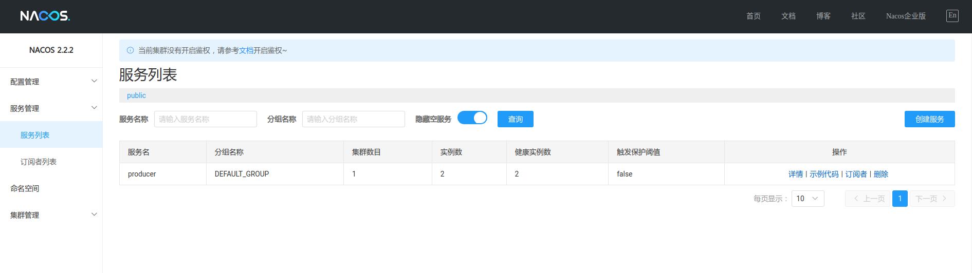 启动Producer后,访问http://localhost/nacos,选择左侧的集群管理 > 节点列表: