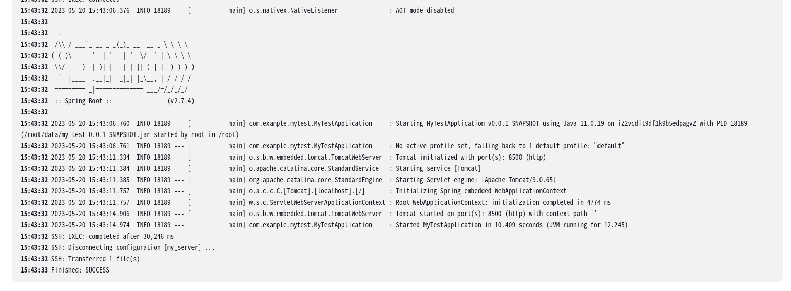 配置java HOME。之后检查jar是否已经启动,启动则关闭。再重新启动jar。可以打开SSH操作日志:
