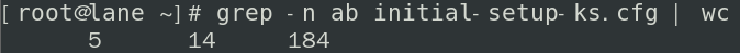 grep -n ab initial-setup-ks.cfg | wc统计文件中有关键词 ab 的行数,总单词数,大小