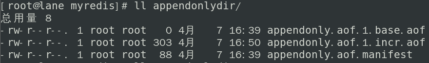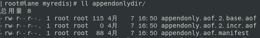 上述文件由 manifest(清单) 来进行管理和跟踪,AOF 文件和 manifest 被放入一个单独的目录中,目录名由 appenddirname 配置