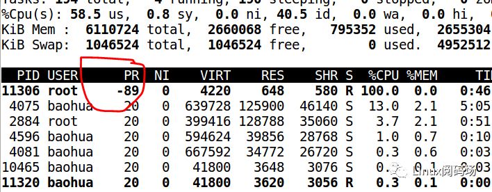 对应内核视角的11,对应top视角的-89:这里还有一个特例,就是用户视角的99(内核bitmap视角的0),显示为top命令的RT: