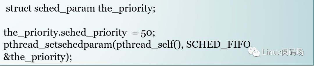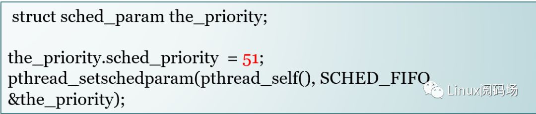 Linux的RT调度策略和普通进程在调度算法上面有差异,RT的SCHED_FIFO和SCHED_RR采用的是一个bitmap:但是从用户态的API里面,则是数值越大,优先级越高。下面的代码,一个线程通过调用API把自己设置为SCHED_FIFO,优先级50