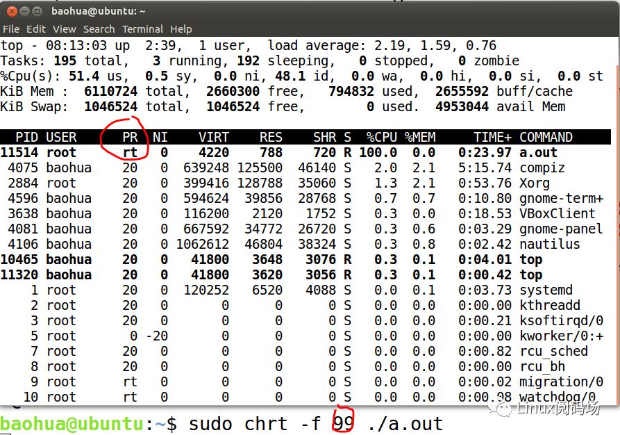 Linux进程的调度优先级数字会在好几个地方出现:内核,用户,top命令。他们各自都有自己的表示法。我们用一个实际的例子来说明,下面在Linux写一个最简单的程序:但是从内核的视角上面来看,又会用99减去用户在chrt里面设置的优先级: