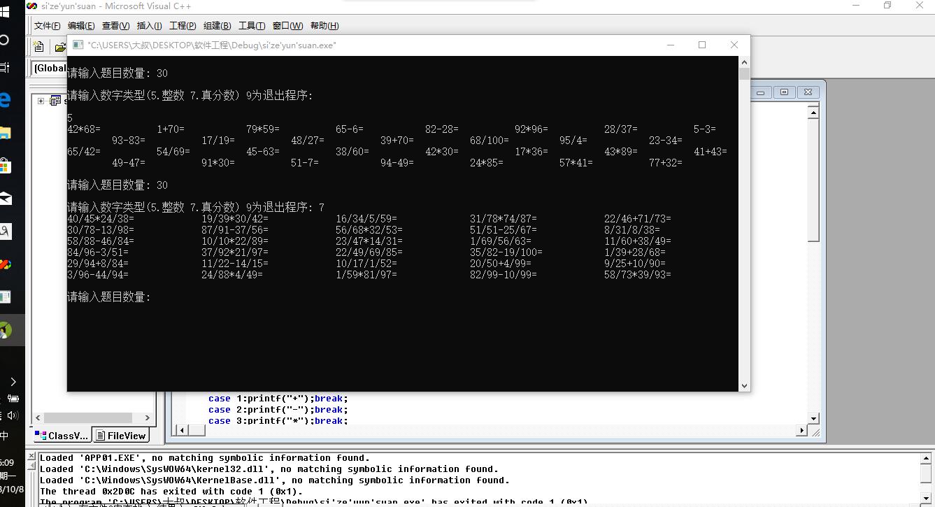 关于四则运算2.0是编写可以自动生成30道100以内的支持真分数的四则运算的题目,在上一个程序上加了可以支持真分数这个要求。