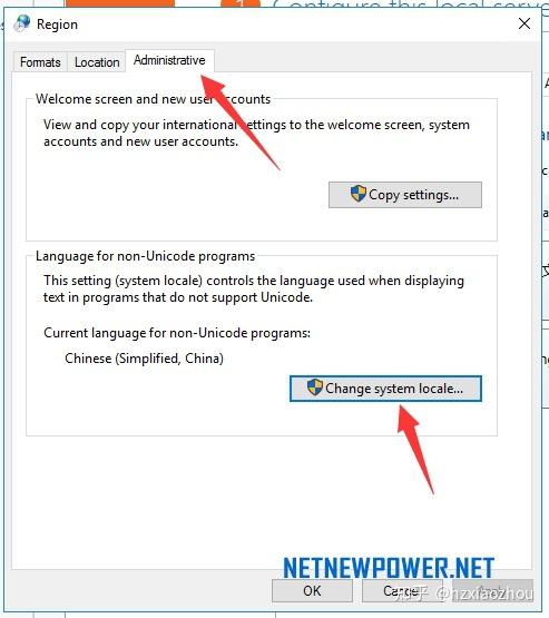 5、切换到Administrative选项卡,点击:Change system locale…;