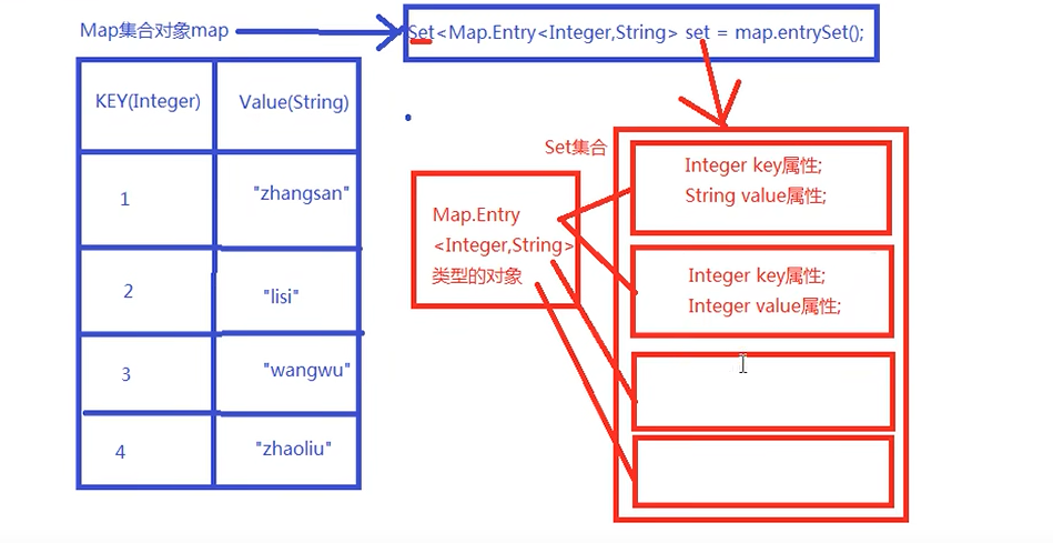 //第二种方式遍历 Set<Map.Entry<K, V>> entrySet();