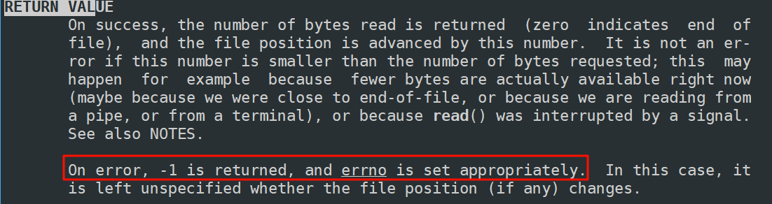 所以我们发现read返回有一个细节,错误的时候返回-1,errno错误码被设置