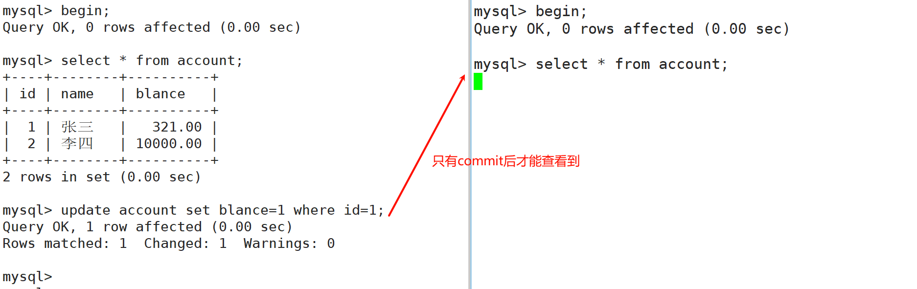 - 只要输入begin或者start transaction,事务便必须要通过commit提交,才会持久化,与是否设置set autocommit无关。