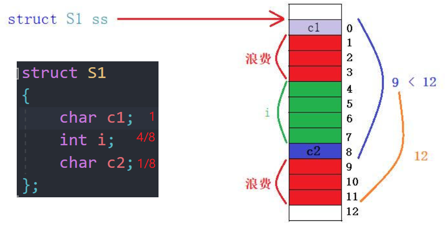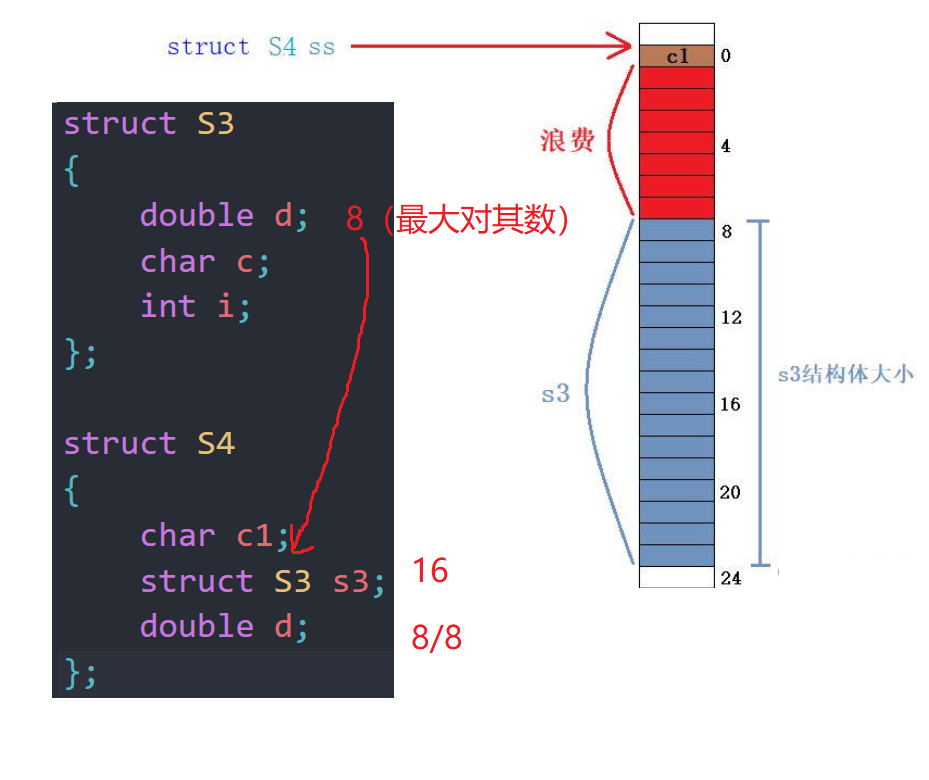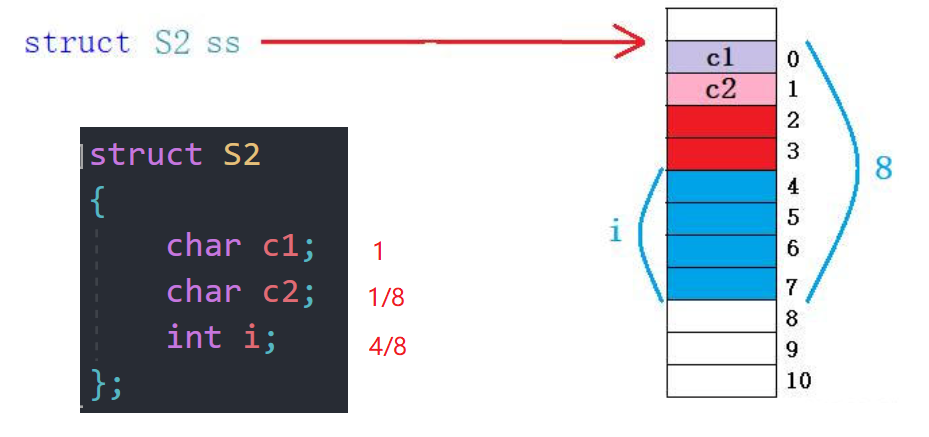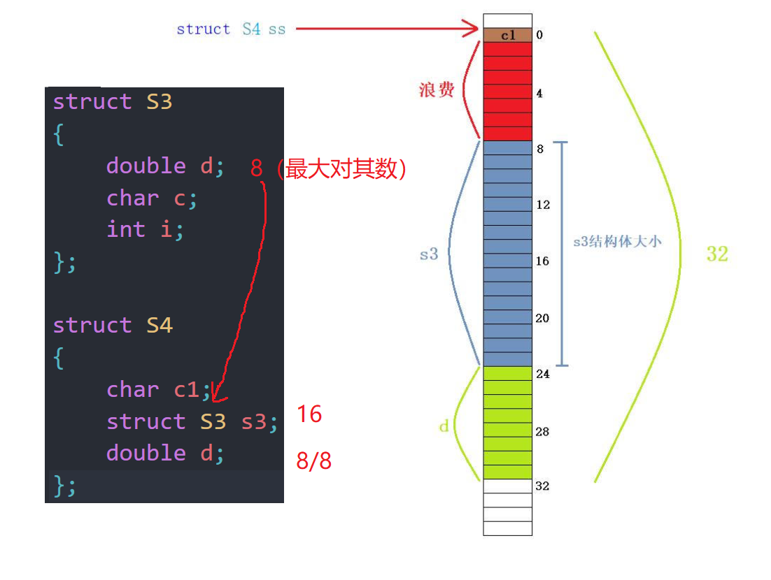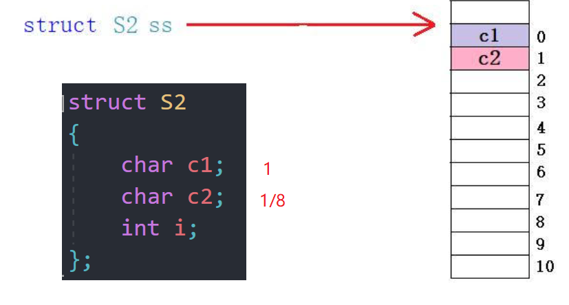 - 当最大成员大小不是最大对齐数的整数倍的时候,就要对齐到最大对齐数的整数倍。