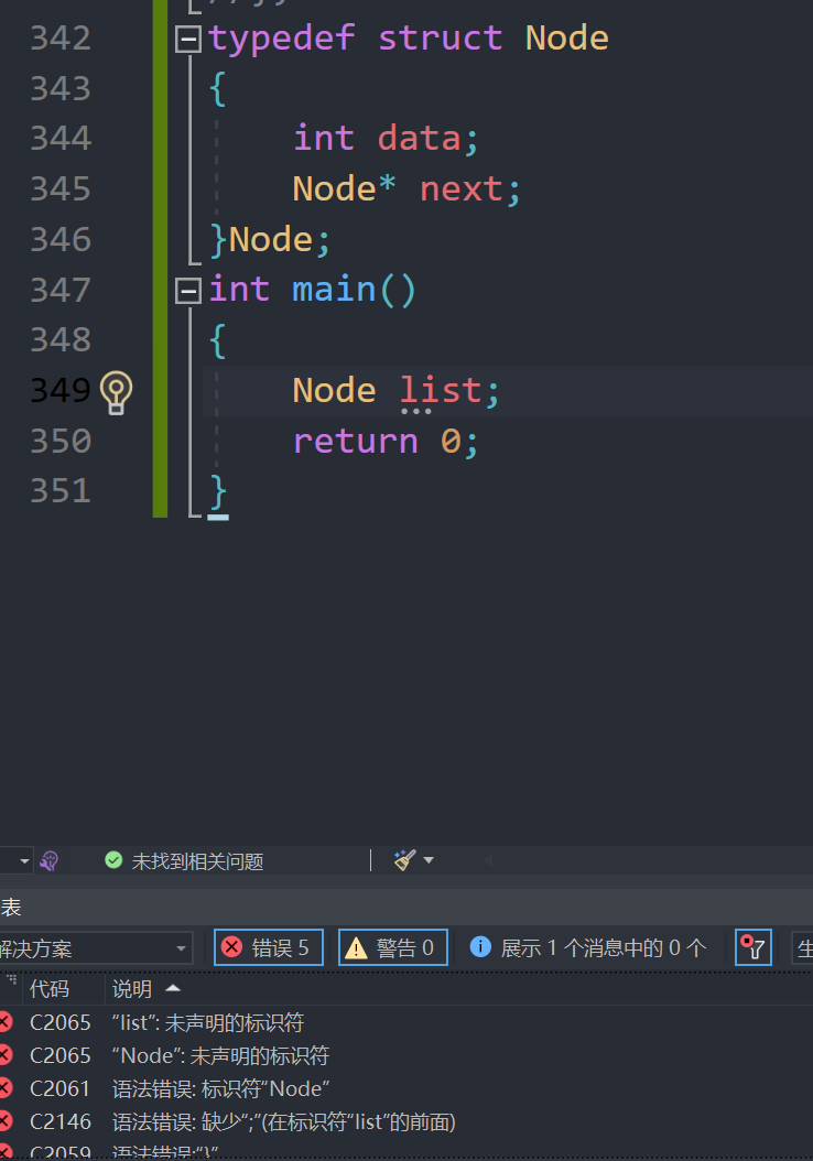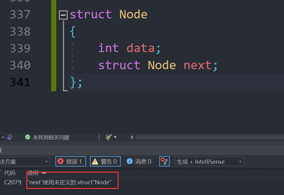 - 可以看到,程序报出了错误,说是【struct Node未定义】,这是为什么呢?