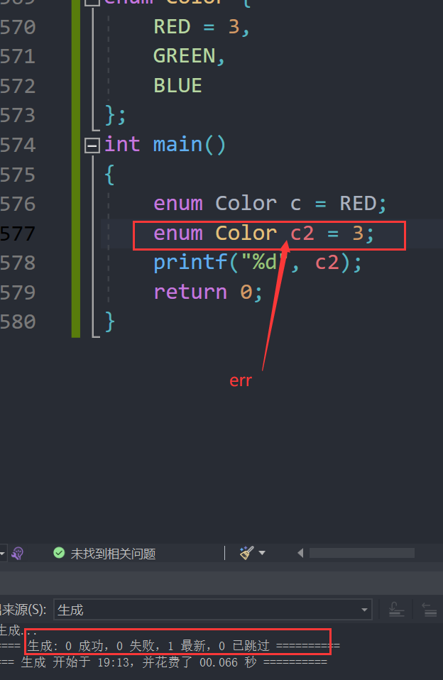 - 对于匿名结构体来说呢只能在声明的时候用一次,后面就不能再用了。所以这个东西其实也没什么用,了解一下就行