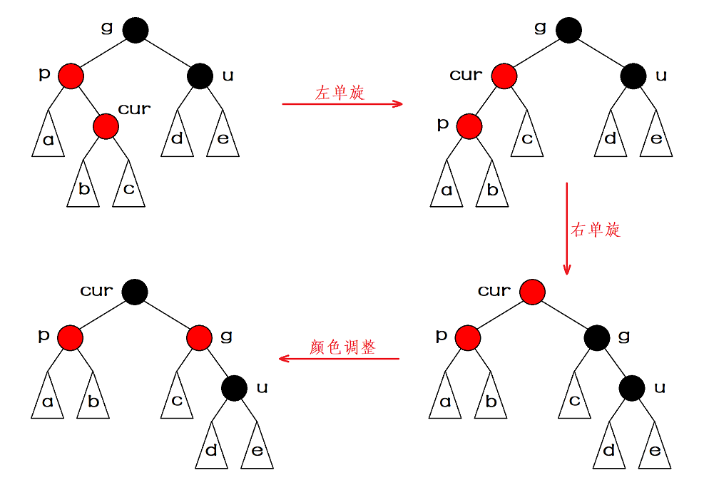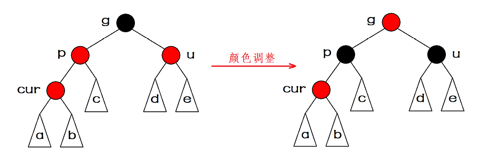 约定:cur为当前节点,p为父节点,g为祖父节点,u为叔叔节点