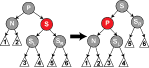 - 要知道为什么这些性质确保了这个结果,注意到性质4导致了路径不能有两个毗连的红色节点就足够了。最短的可能路径都是黑色节点,最长的可能路径有交替的红色和黑色节点。因为根据性质5所有最长的路径都有相同数目的黑色节点,这就表明了没有路径能多于任何其他路径的两倍长。