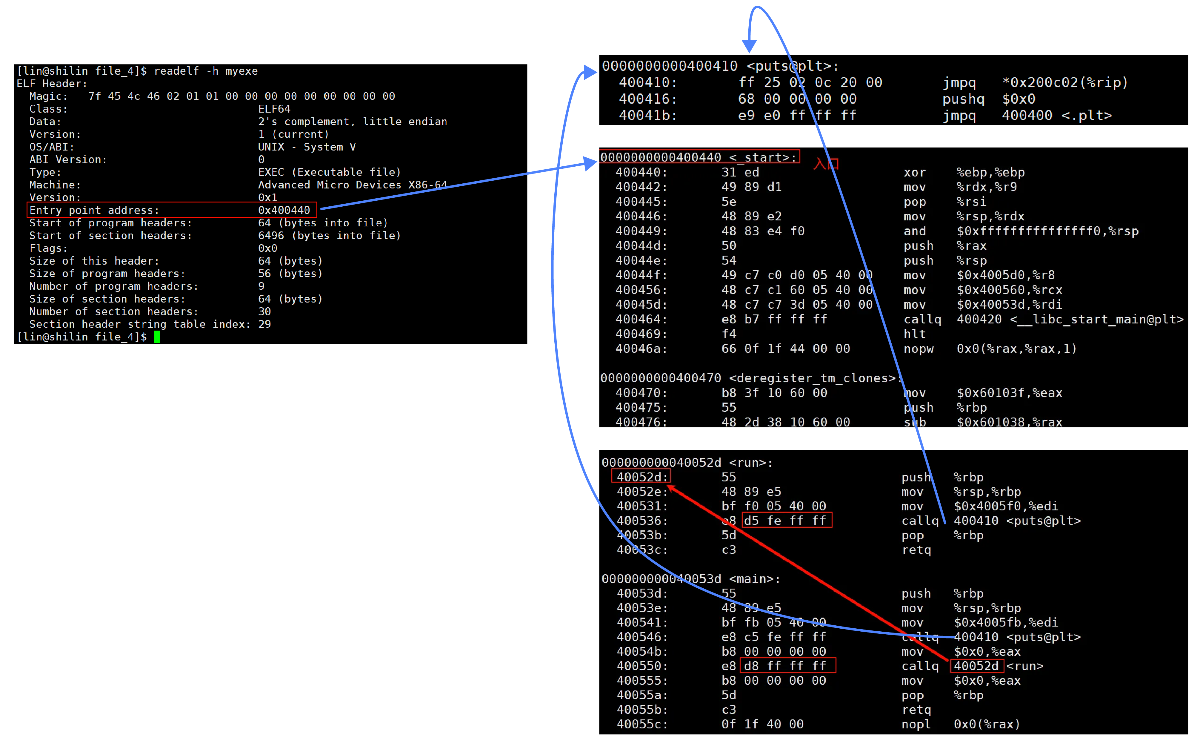 __libc_start_main:一旦动态链接完成,_start函数会调用__libc_start_main(这是glibc提供的一个函数)。__libc_start_main函数负责执行一些额外的初始化工作,比如设置信号处理函数、初始化线程库(如果使用了线程)等。 - 调用
