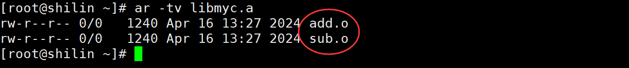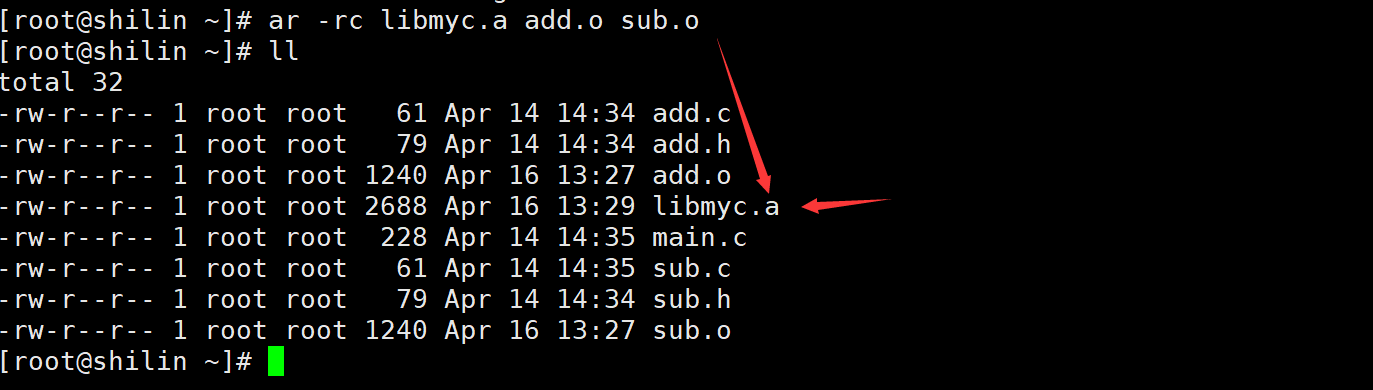 ar命令是gnu的归档工具,常用于将目标文件打包为静态库,下面我们使用ar命令的-r选项和-c选项进行打包。