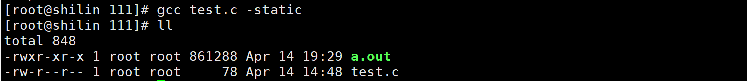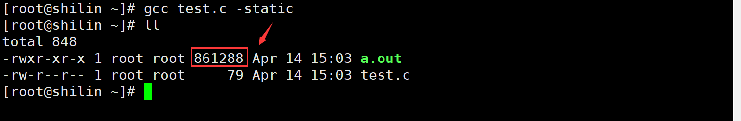 - 此时生成的可执行程序就是静态链接的了,可以明显发现静态链接生成的可执行程序的文件大小,比动态链接生成的可执行程序的文件大小要大得多。
