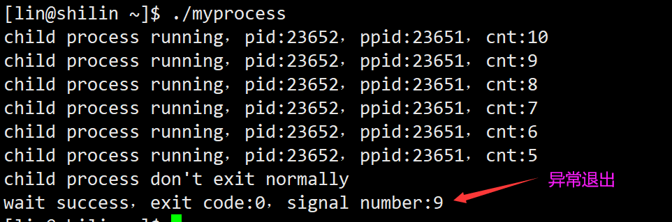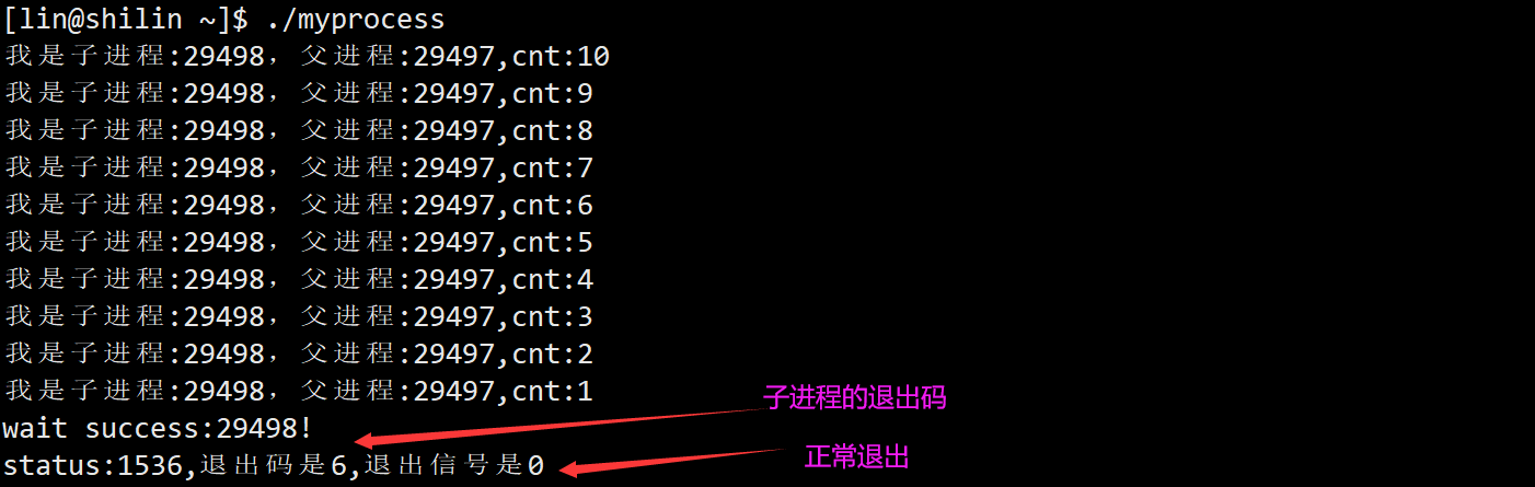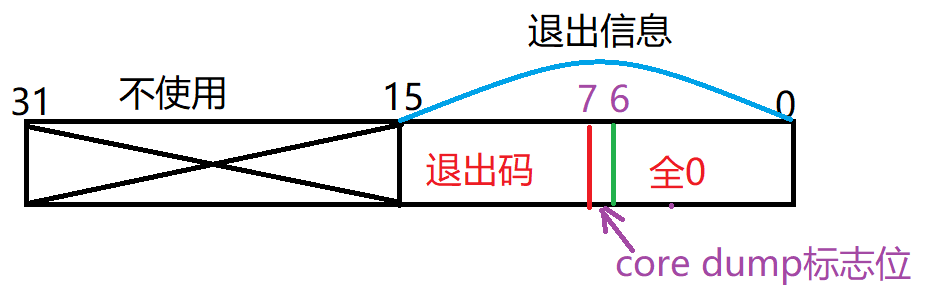 也就是说衡量一个进程退出,我们只需要两个数字:退出码和退出信号