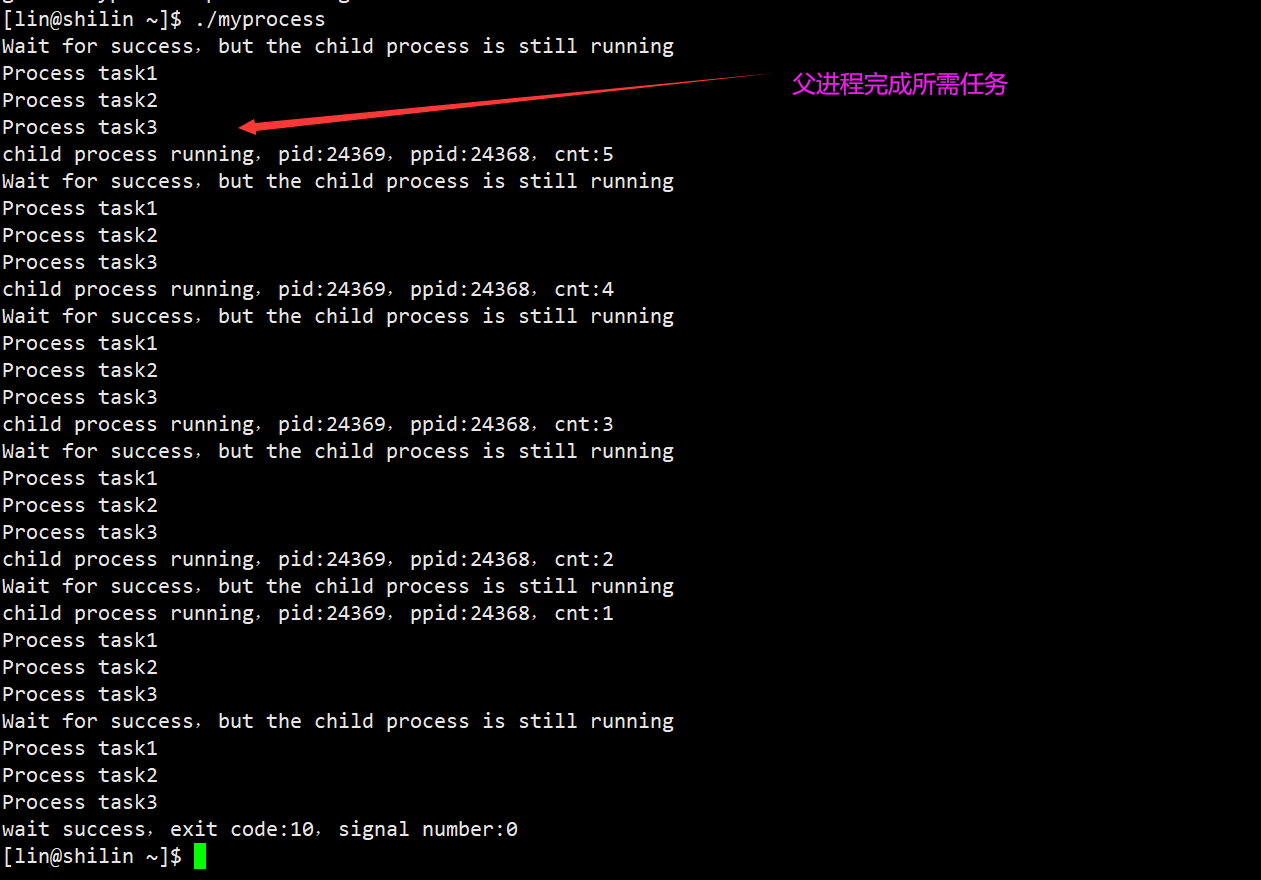 在父进程中,使用wait或waitpid接口来完成进程等待。