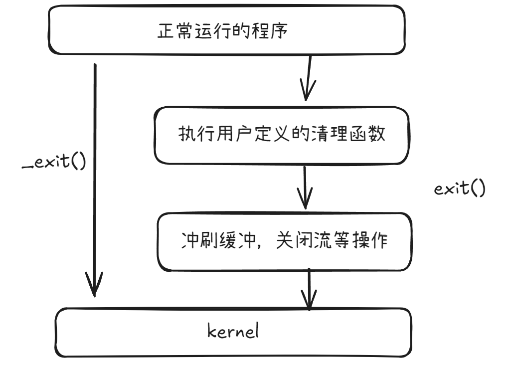 - exit是库函数,_exit是系统调用函数,而库函数内部封装了系统调用。 也就是说,调用exit函数最终也会调用_exit来使进程退出,只不过在其调用_exit之前,还做了其他工作: