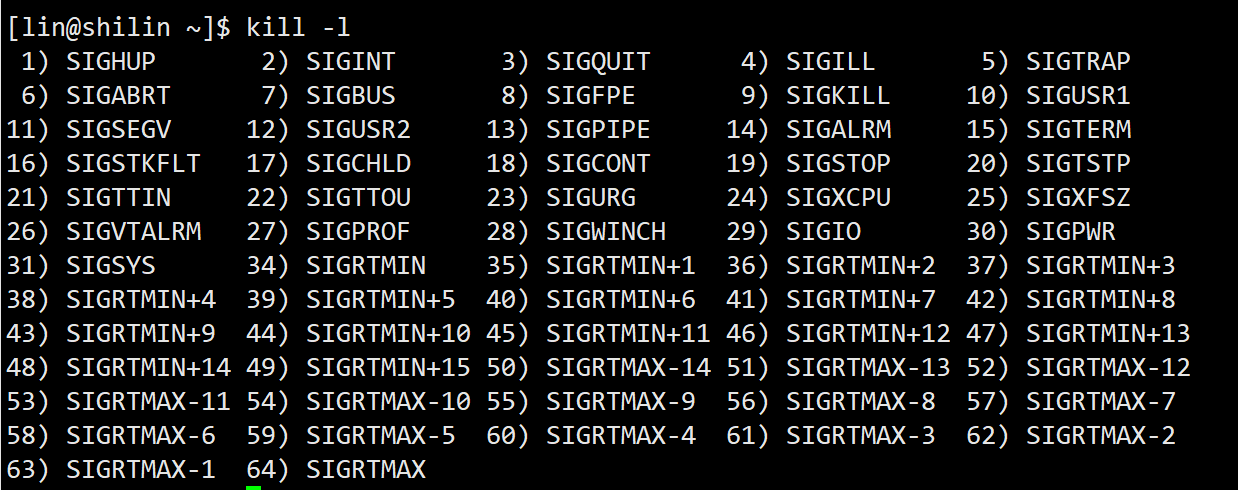 在Linux中,可以使用kill -l查看所表示的信号,可以看到0表示成功~,所以一般正常运行完成之后退出码就写成0,非0表示失败