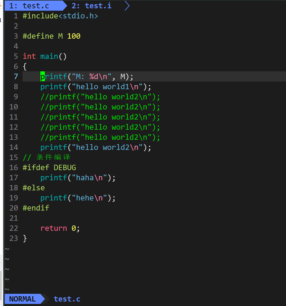 - 清晰的看到,宏定义,文件包含,条件编译,去注释等已经生效了
