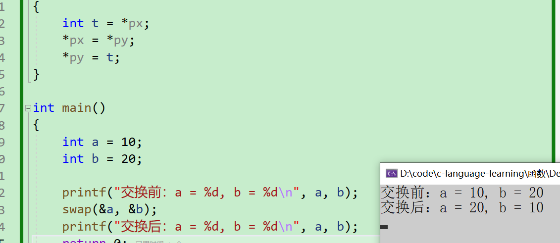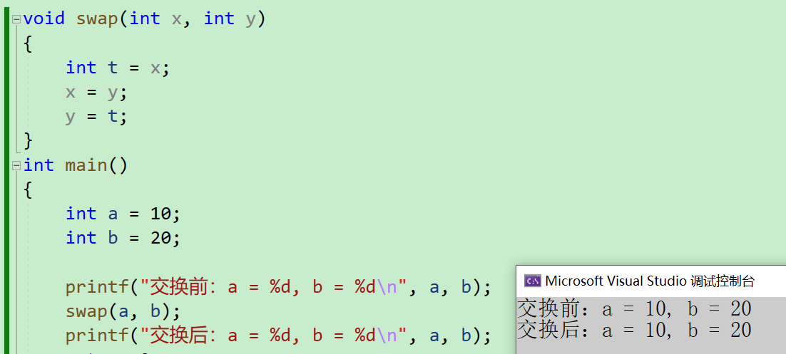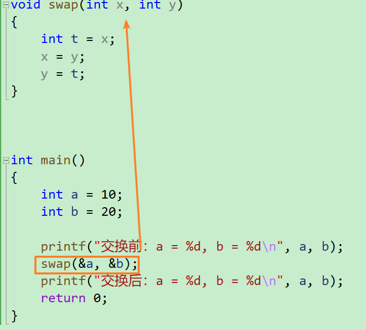 - 上面这一个,叫做【传值调用】,函数内部形参的修改是不会影响实参的,接下来我们来讲讲【传址调用】