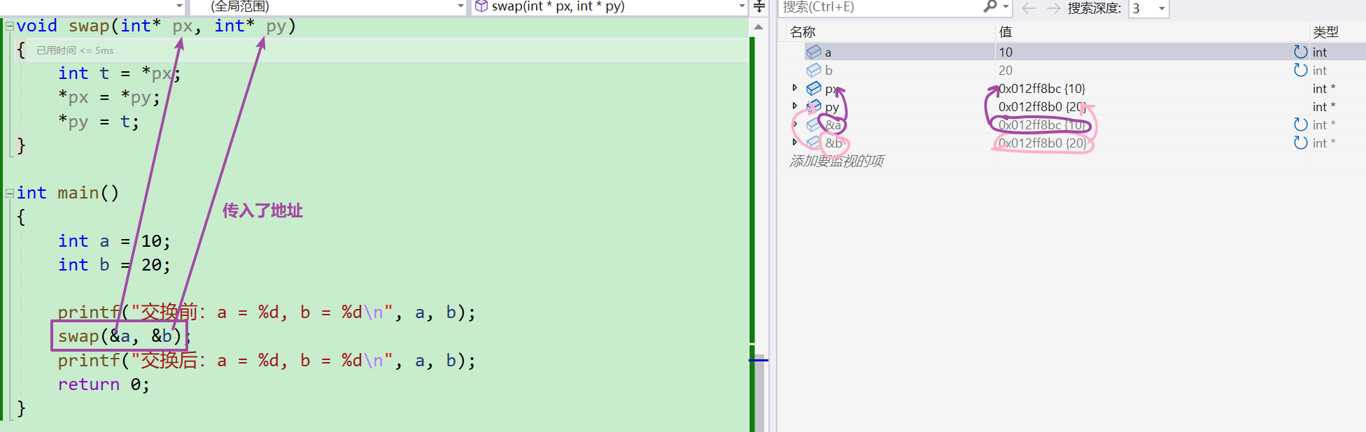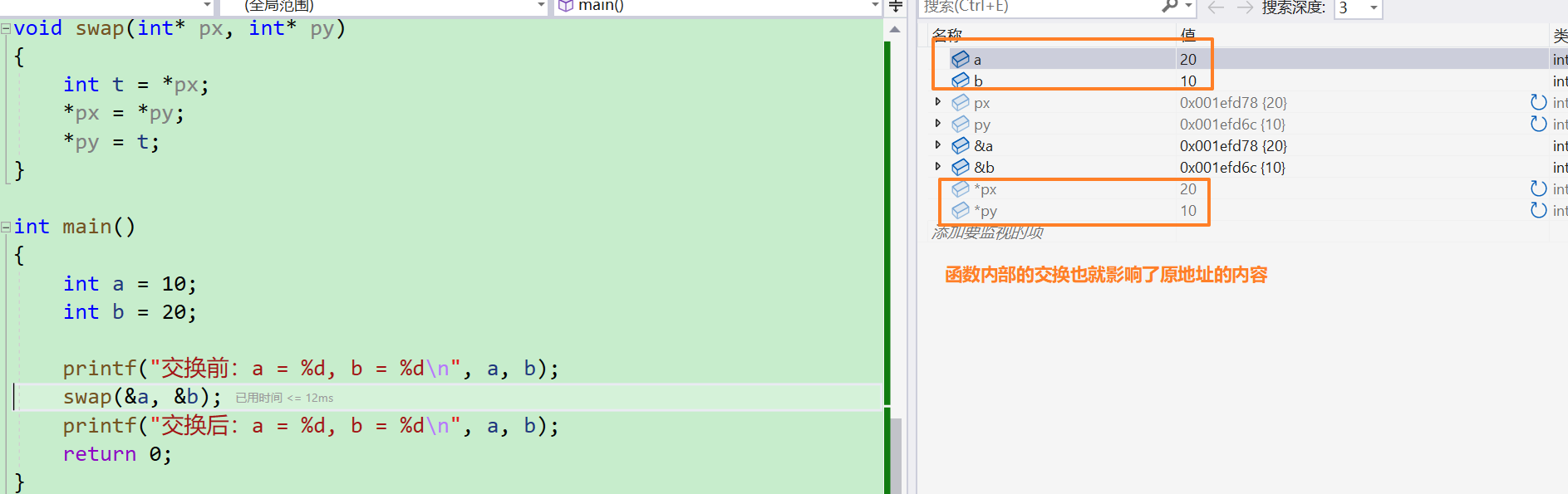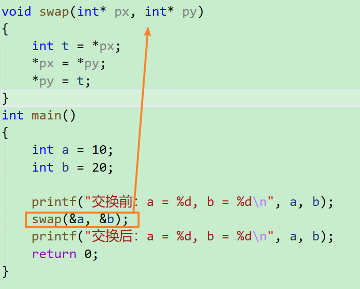 void swap(int* px, int* py)