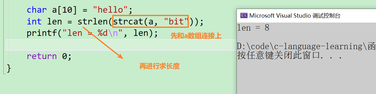 my_strlen(abc)就相当于是1 + 1 + 1 + 0。也是使用字符指针去进行一个后移,若其不为【\0】时,就不断对这个字符串进行拆分,然后直到遇到【\0】时便return 0。接下去就可以写出代码了