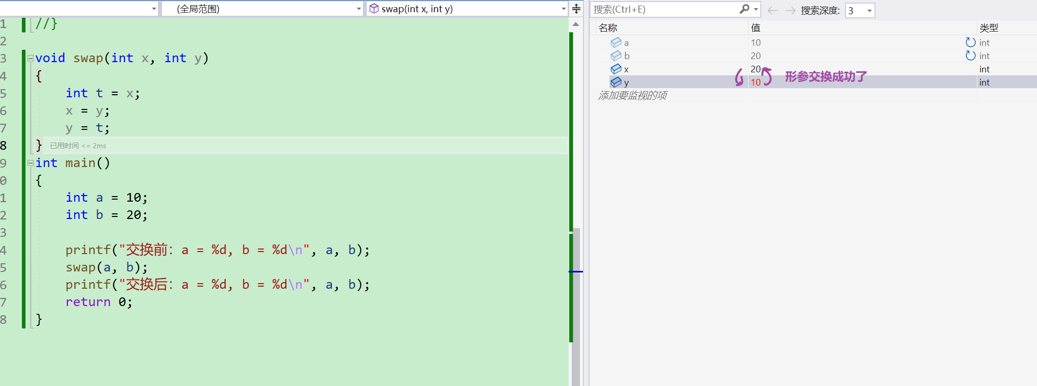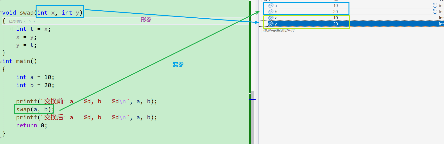 结论: 形参实例化之后其实相当于实参的一份临时拷贝。