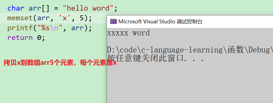 memset(arr, 'x', 5);