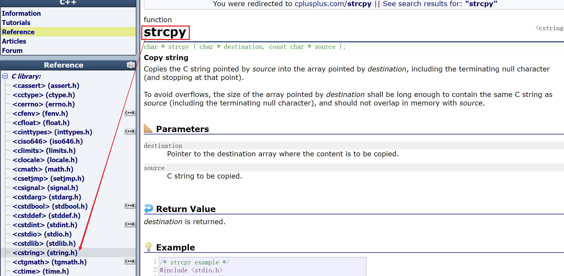 - 那么怎么看一个库函数改引入什么头文件呢?可以打开上面那个网站,搜索库函数,然后在左面就会有。