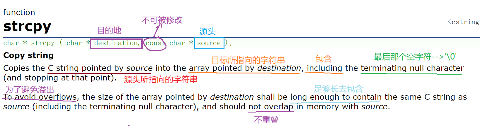 char * strcpy ( char * destination, const char * source );