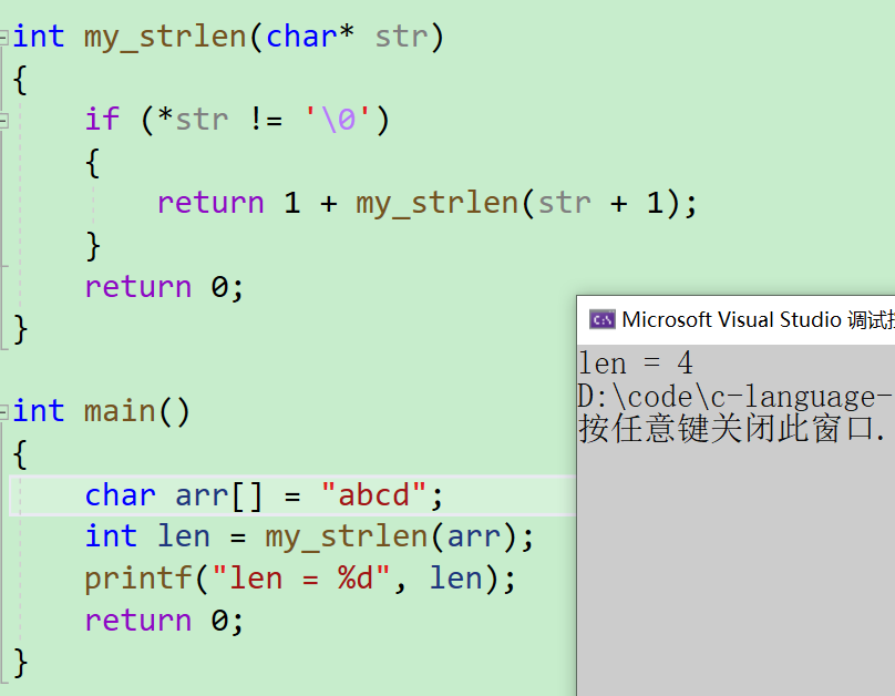 my_strlen(bc)我们可以拆成1 + my_strlen(c) - 对于