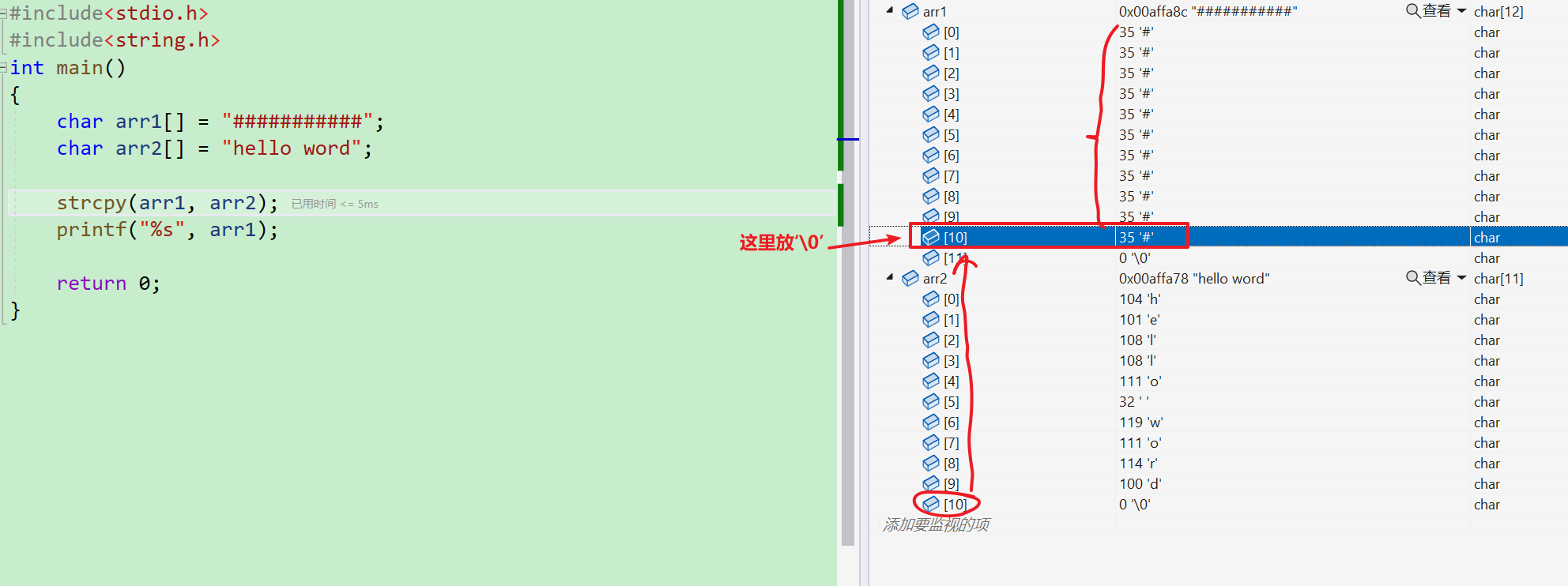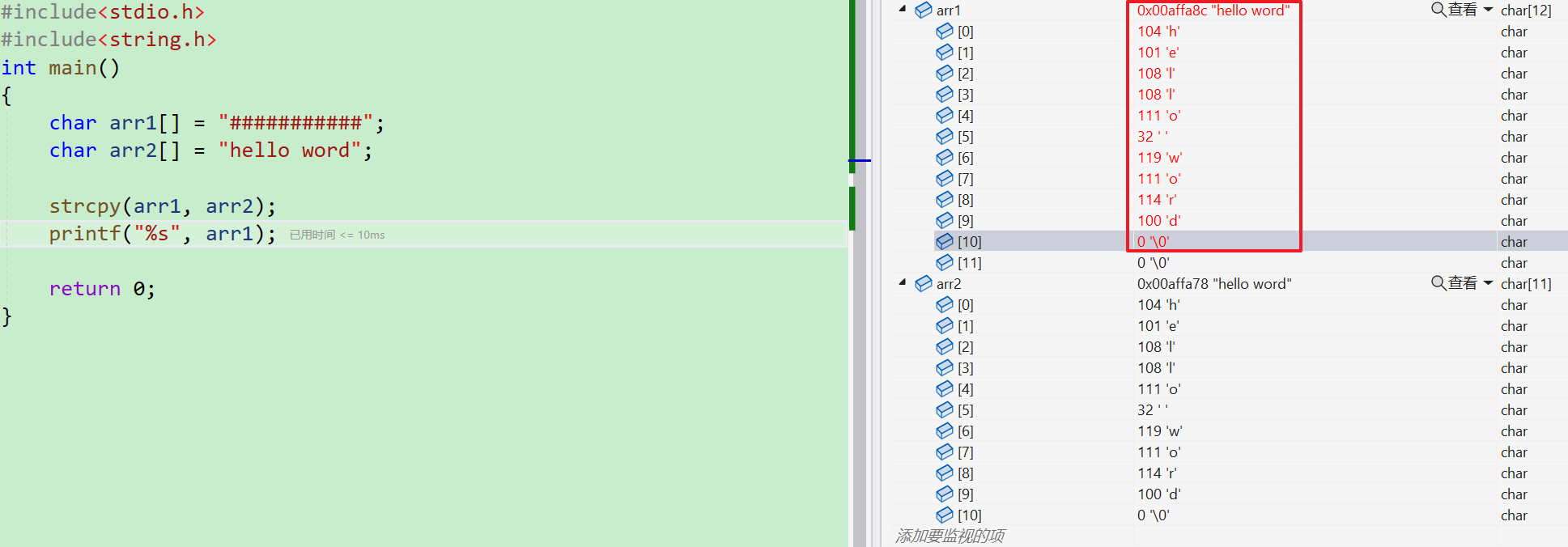 char arr2[] = "hello word";