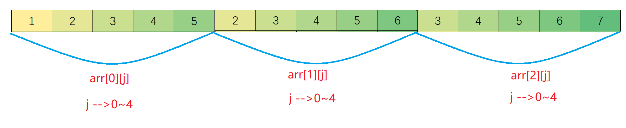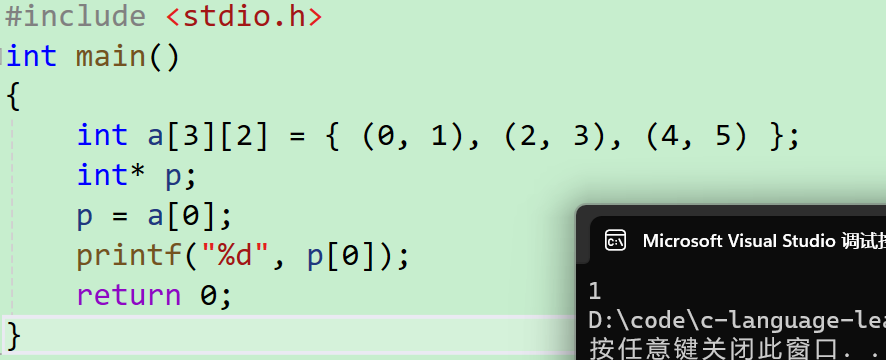 - 首先我我们要注意这个二维数组的初始化里面的扩话,是小括号,而不是大括号,里面是逗号表达式