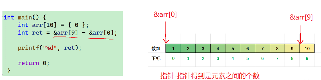 - 我们这里是小地址减去了大地址,得到的是元素与元素之间的个数,得到的是负数
