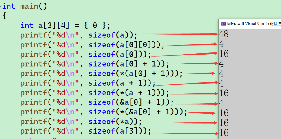 - 然后a[0] == &a[0][0],也就是第一行的地址
