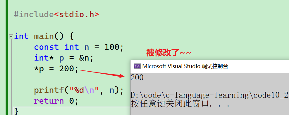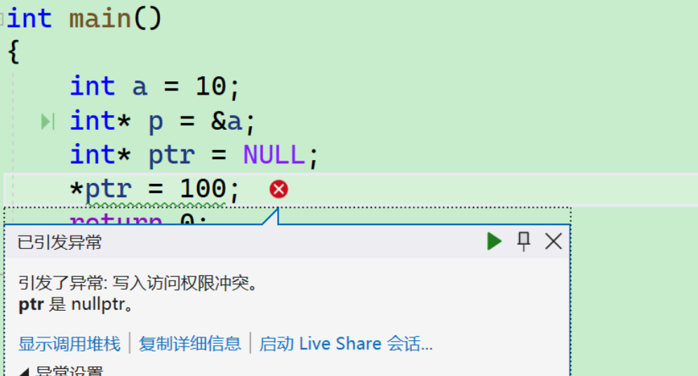 *pa的意思就是通过pa中存放的地址,找到指向的空间,pa其实就是a变量了;所以pa = 0,这个操作符是把a改成了0.有同学肯定在想,这里如果目的就是把a改成0的话,写成a = 0; 不就完了,为啥非要使用指针呢? - 其实这里是把a的修改交给了pa来操作,这样对a的修改,就多了一种的途径,写代码就会更加灵活,后期慢慢就能理解了。