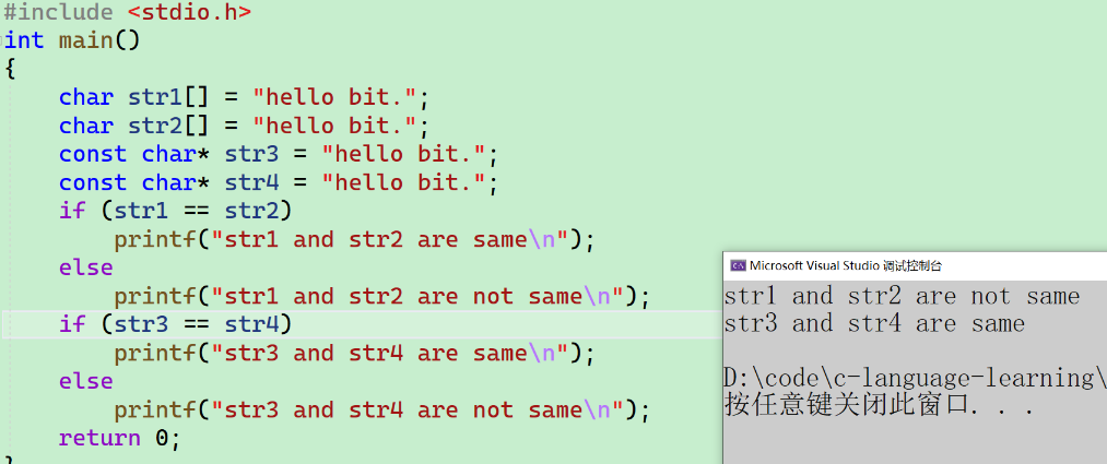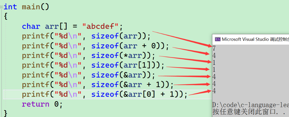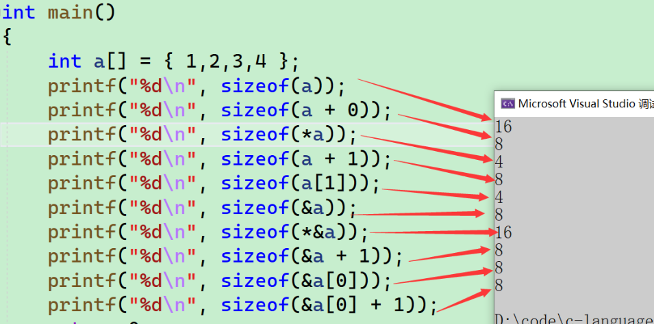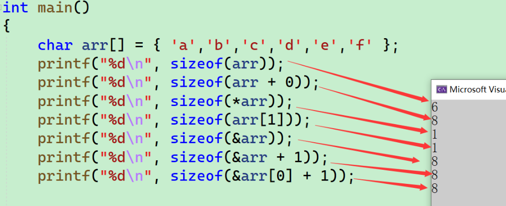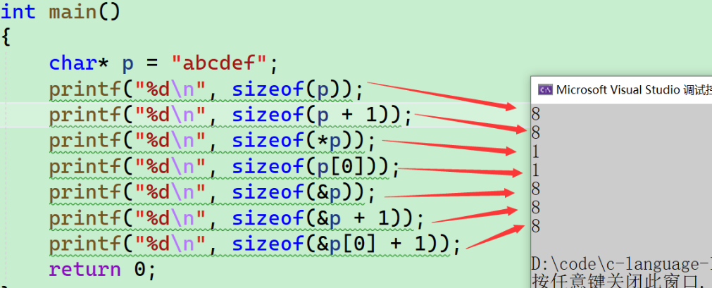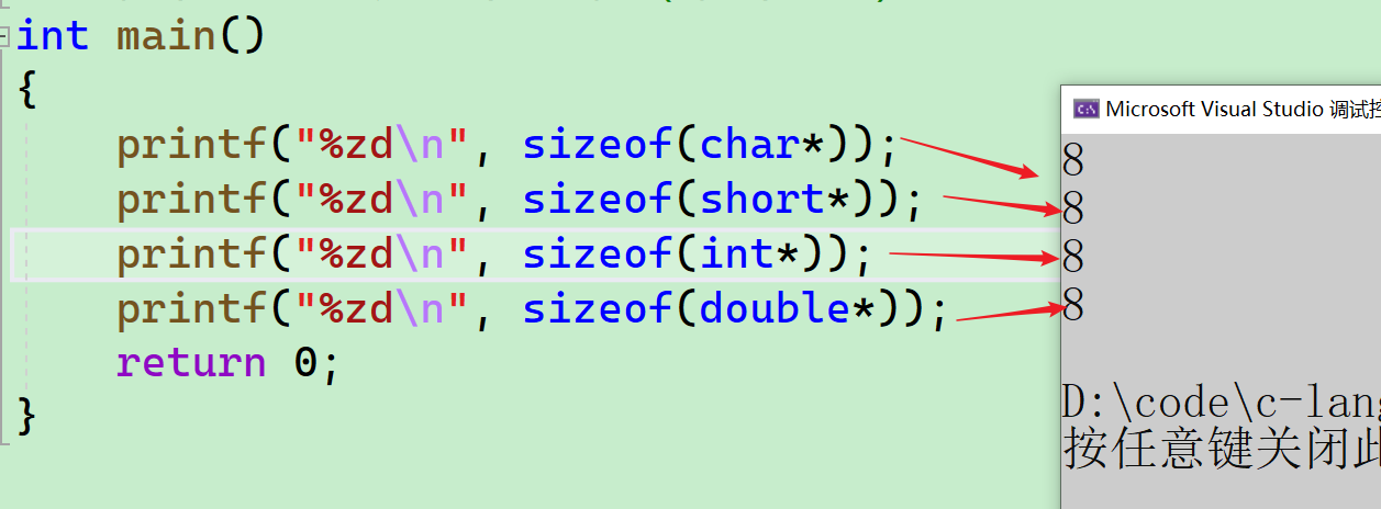 - 8个字节的空间,指针变的大小就是8个字节。