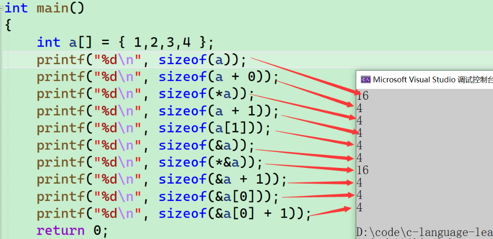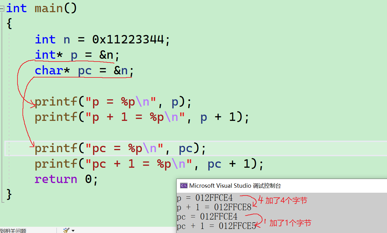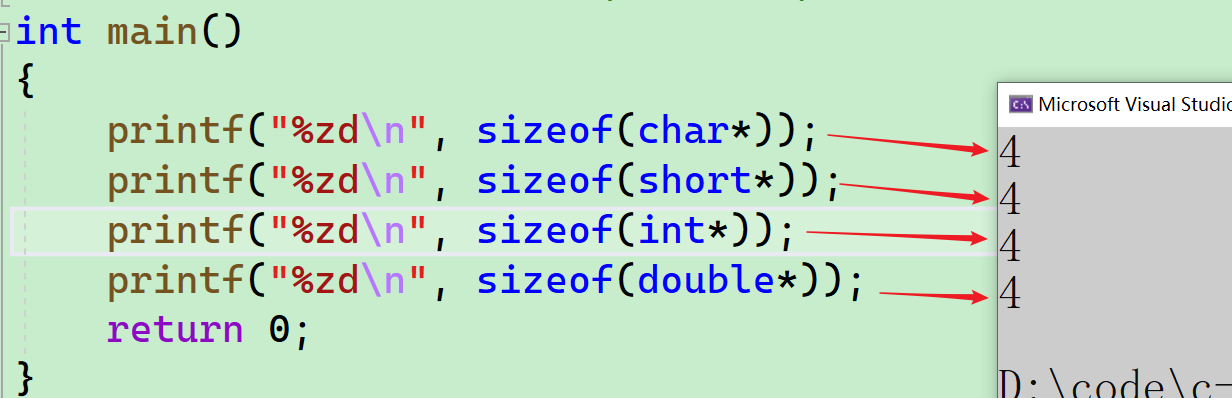 - 可以看到,都是4个字节,指针变量的大小是固定的,不要以为