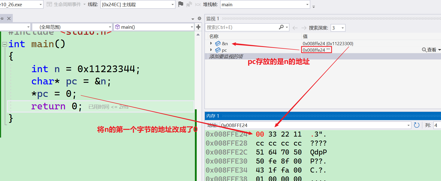- 虽然整型变量占用4个字节,我们只要知道了第一个字节地址,顺藤摸瓜访问到4个字节的数据也是可