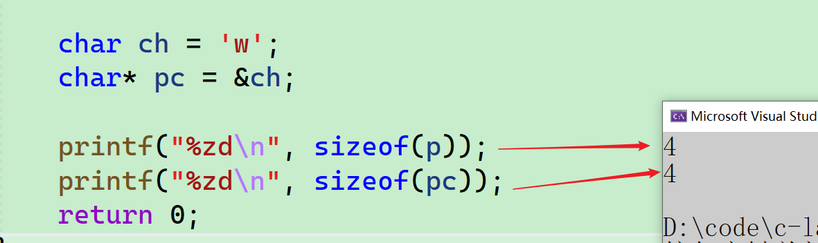 printf("%zd\n", sizeof(pc));
