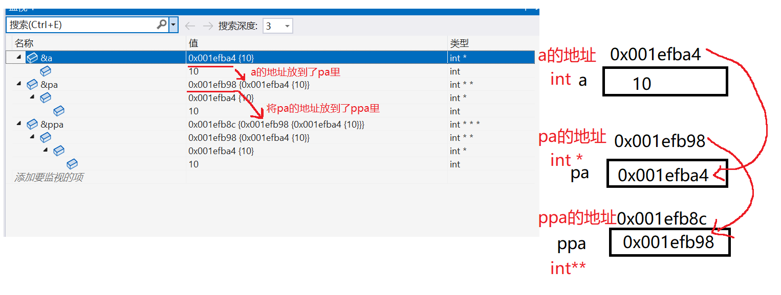 - 其中pa叫做指针变量,因为是存放指针的变量,所以叫做指针变量。