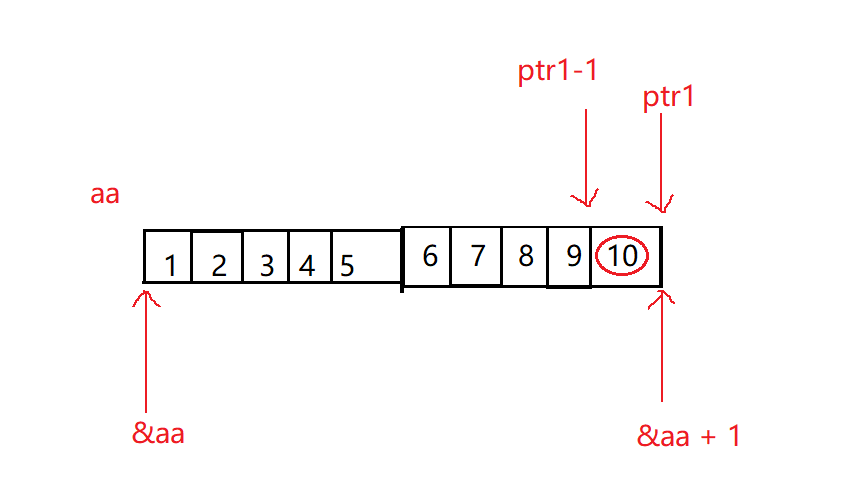 ptr1,然后我们看ptr1-1,就是减去了一个整形,然后解引用就找到了10